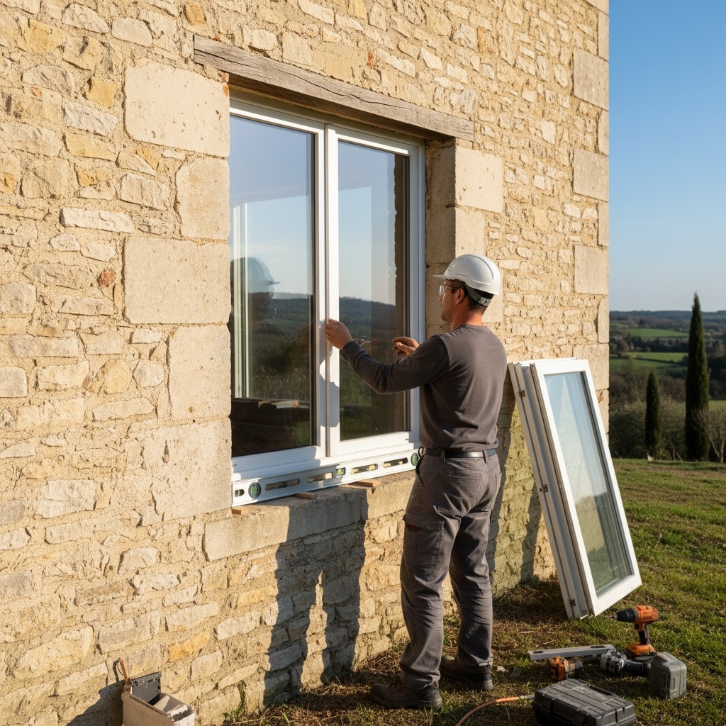 Installation de menuiseries PVC, Alu ou bois pour particuliers, offrant une isolation thermique supérieure et une luminosité maximale.